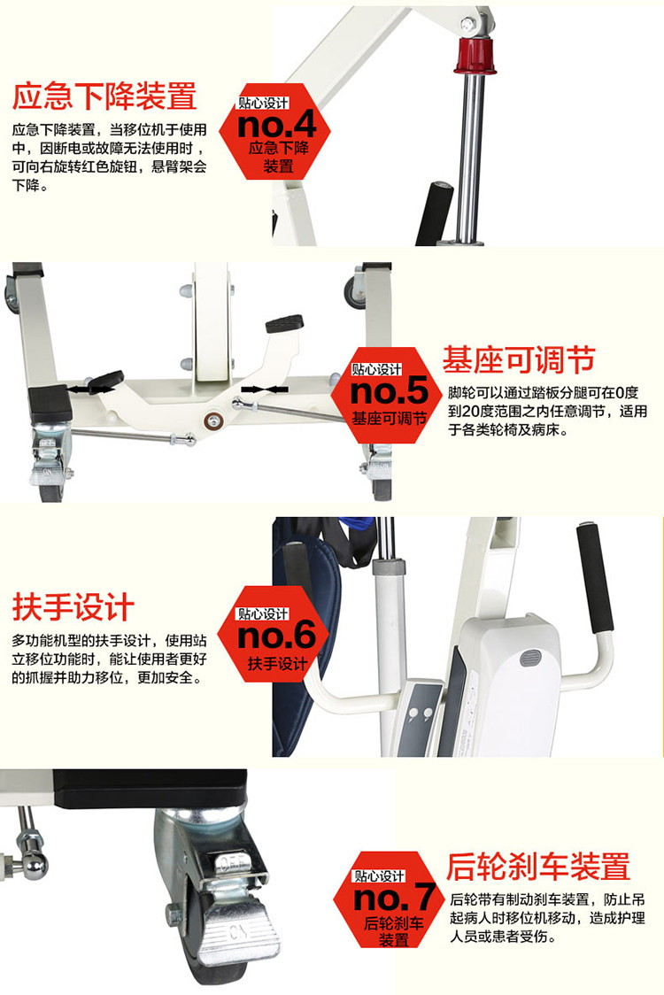 插电型移位机:插电/蓄电两用 不插电情况下 支持十次左右上下吊起!手动液压移位机:手动液压杆 不费力气 起降平稳